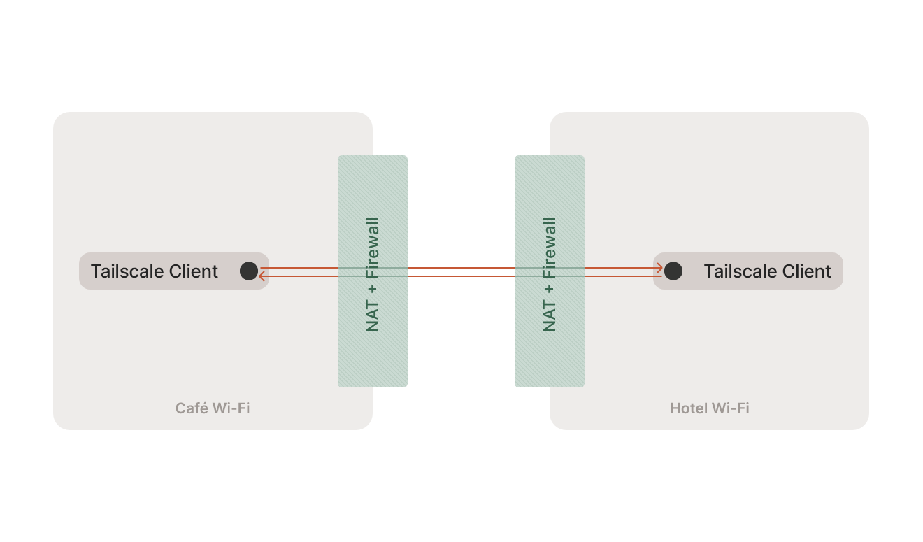 개인 키는 절대 노드를 떠나지 않습니다. 이는 개인 키가 와이어가드 세션을 협상 할 때 해당 노드를 가장(impersonate)하는 데 사용될 수있는 유일한 방법이기 때문에 중요합니다. 결과적으로 해당 노드만이 자체에서 주소가 지정된 패킷을 암호화하거나 자체로 주소가 지정된 패킷을 해독 할 수 있습니다. 테일 스케일 노드 연결은 엔드 투 엔드 암호화 (제로 트러스트 네트워킹)로 구성됩니다.